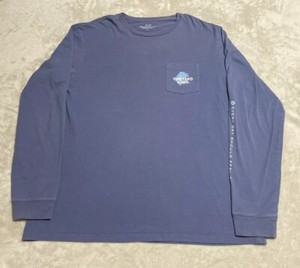 Vineyard Vines T Shirt Mens Large Blue Long Sleeve Pocket Fish Graphic Logo Tee