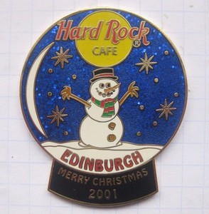 HARD ROCK CAFE / EDINBURGH 2001 SNOW MAN BLUE GLOBE ... PIN (146j)