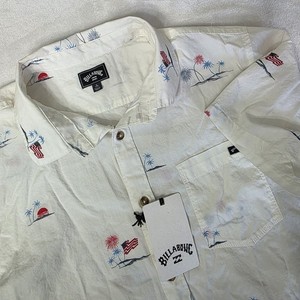 Billabong Sundays Large White July Flag American Palm Fireworks Beach Button Up