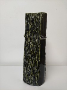 Vintage Arthur Wood Bracken Triangle Vase 1950's In Green, Textured Tree Bark
