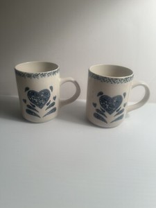 Set of 4 Gibson Blue Dots Stripes Graphic Stoneware 12oz Coffee Mugs EUC