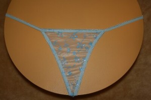 Very Sheer Blue G-String With Sheer Flowers, Cute Bow & Ruffles - No Size