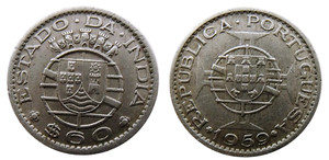 INDIA PORTUGUESE 60 CENTAVOS 1959 RARE OLD COIN