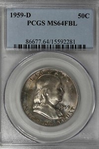 1959-D 50C PCGS MS64FBL .50, Benjamin Half, Bell Half Dollar