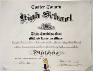 1936 Diploma Custer County High School Miles City Montana Ribbons Gold Sticker