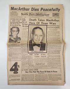 Seattle Post Intelligencer News General Douglas MacArthur Dies Memorial 1964
