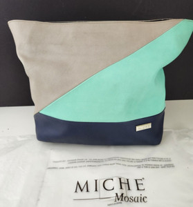MICHE Mosaic Demi Shell Navy Seafoam Green Taupe 1 Side Zipper Pocket