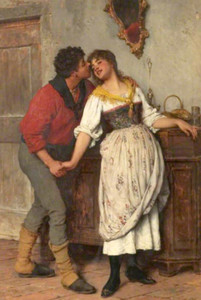 Oil painting Angelo Asti - Beautiful young girl in red cloth hat Hand painted