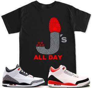 J's ALL DAY Elephant T Shirt to match with Air Js Retro 3 Fire Red Shoes