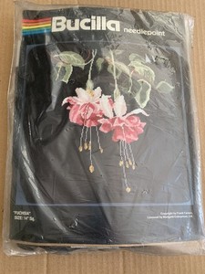 Bucilla Needlepoint Kit 4510 FUCHSIA Flowers Black Background 14" x 14" Vintage