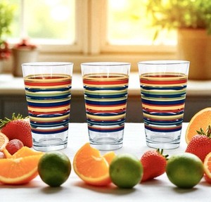 3 Libbey Mambo Fiesta LRS159 Multicolored Bands Retro 5 7/8" Glass Tumblers MINT