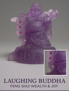 Amethyst Purple Laughing Buddha Feng Shui /Red Crystals | Liuli Style Resin 5"