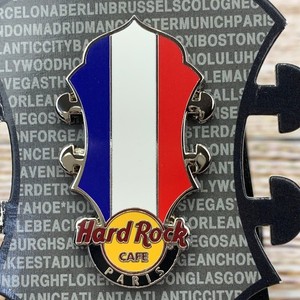 Hard Rock Cafe Paris Guitar Headstock Flag Pin Collectible France On Card