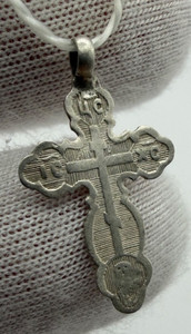 Antique Orthodox cross pendant, silver (tested), hand engraving, 0.74 g