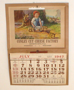 Vintage 1947 Conley Cut Cheese Factory Woodman, Wisconsin Calendar w/ Pencil M17