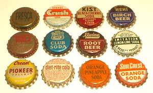 Vintage Lot of 12 NOS Cork Lined Soda Bottle Caps Elwino, Orange Crush, Tab Etc.
