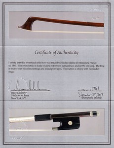 A fine old French certified cello bow by Nicolas Maline, c. 1845.