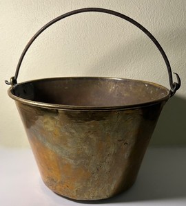 1880 Waterbury Brass Company Brass Bucket Pail 8.5" H X 13" D, Rat Tail Handle