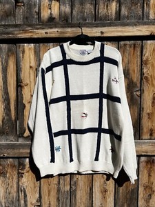 Vintage Fishing Lure Embroidered Hand Knit Sweater by Cape Isle XL