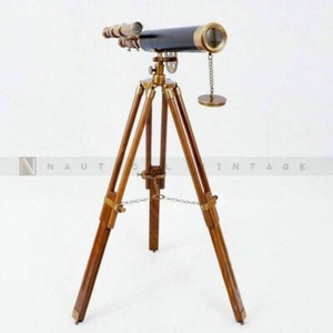 18" Brass Nautical Antique Marine Double Barrel Telescope W/ Wooden Tripod Stand