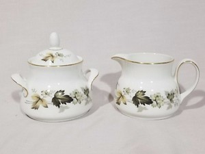 Royal Doulton "Larchmont" Sugar Bowl with Lid and Creamer Set - EXCELLENT