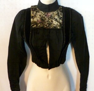 ANTIQUE 19th Century 1800s VICTORIAN BLACK SATIN & LACE BODICE Bust 29