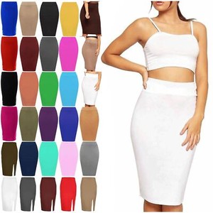 Ladies Women Jersey Stretchy Pencil Plain Elastic Office Bodycon Skirt Plus Size