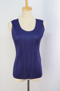 PLEATS PLEASE Navy Blue Sleeveless Tank Top 102 9549