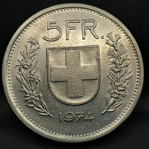 5 FRANCS 1974 TETE DE BERGER SUISSE / SWITZERLAND CUPRONICKEL