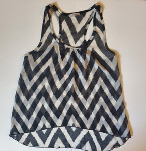 Teenbell Women Tank Top M Black White Chevron Sleeveless High Low Tee-back