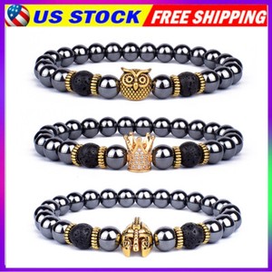 Charm Hematite Owl Charm Bracelets Men Lava Stone Crown Helmet Bracelet For Men