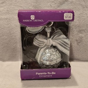 American Greetings Parents-To-Be Ornament Silver Ball Bow Baby Shower Gift Box