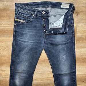Diesel Jeans Men 29X30 Blue Thommer Slim FIt Stretch Thrashed Repaired 009KF