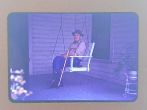 Vintage 35mm Kodachrome Slide Man on Porch Swing Holding Cane USA