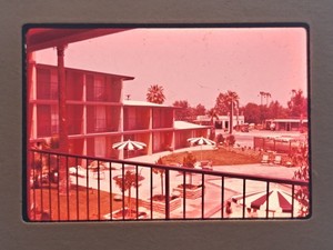 Vintage 1960 Kodak Ektachrome 35mm Slide California Motel Pool Scene
