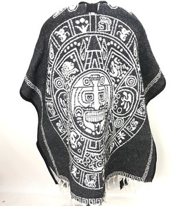 Vintage Aztec Poncho San Patricio Mexican Poncho Black White Graphic Cool Woven