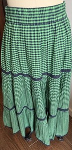 NWT Anthropologie Skirt Maxi Navy, Green Gingham Tiered Size 8 Lace Trim Cotton