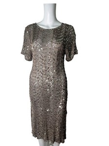 M&S Bodycon Dress Size Small Bronze Brown Sequined Crochet Short Sleeve Womens