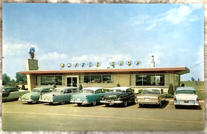 Sauzer's Waffle Shop Schererville Indiana 1950’s Cars Chrome Postcard 3019