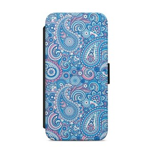 Blue Printed Paisley Pattern Wallet Phone Case Cover for Huawei P Smart 2019