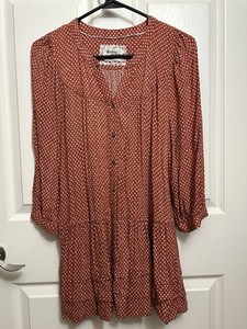Holding Horses Anthropologie Rust Red Printed Button Front Tunic Dress