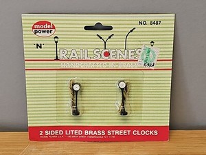 Model Power 8487 N Scale 2 Sided Brass Lighted Street Clocks New