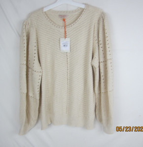 Women's Knox Rose Pullover Pointelle Crewneck Beige Sweater 4X