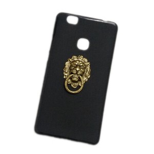 For Huawei 3D Bronze Lion Head Finger Ring Stand Holder Back Hard Case Cover