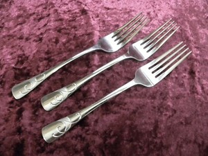 SERIF 3 Salad / Dessert Forks Oneida Stainless Frosted Accent 115 China FINE