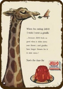 1955 GIRAFFE Loves JELLO Vintage-Look-Edge DECORATIVE REPLICA METAL SIGN