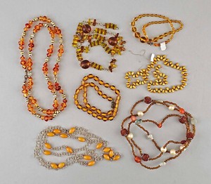 9325190-d Posten Modeschmuck Vintage Süßwasserperlenketten Glas u.a. gelb braun