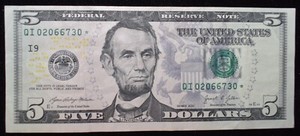 $5 dollar bill star note 2021 *prime number (SKU#28)