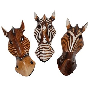 Safari Animal Wood Mask Zebra Horse Giraffe Hand Carved Wall Art Decor Hanging