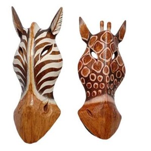 Hand Carving Wood Mask Wall Art Decor Hanger 10 inches Set 01 Giraffes Antelopes